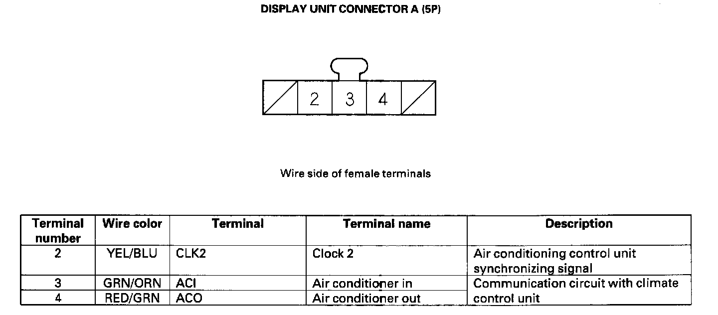 Display Unit Inputs And Outputs For Connector A (5P):