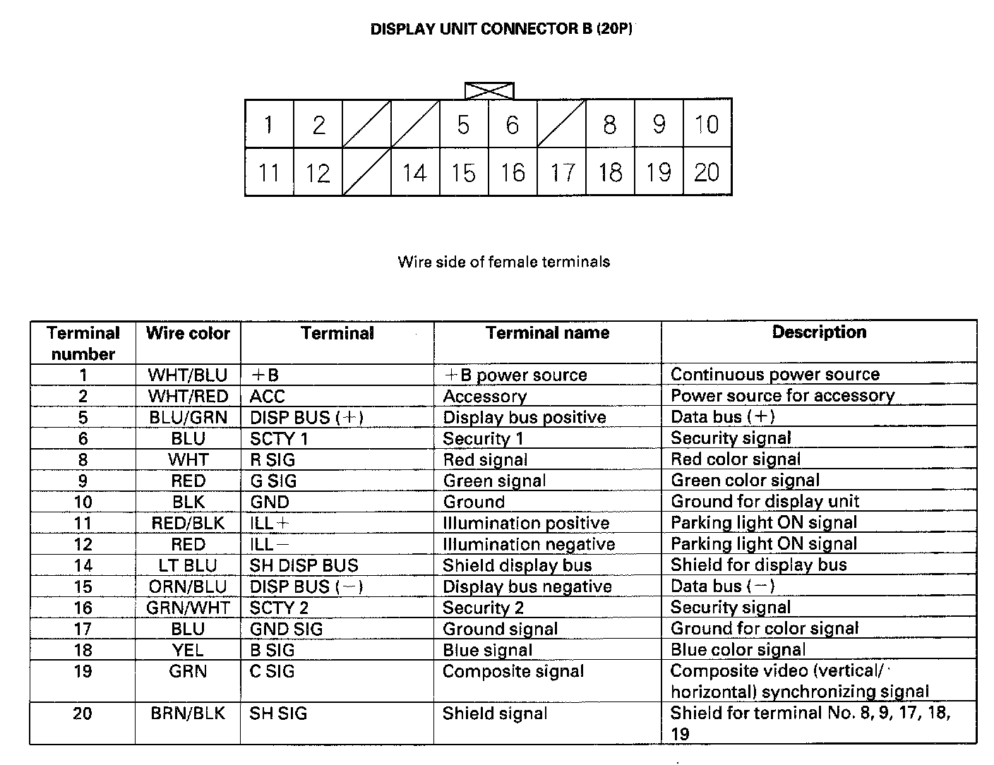 Display Unit Inputs And Outputs For Connector B (20P):