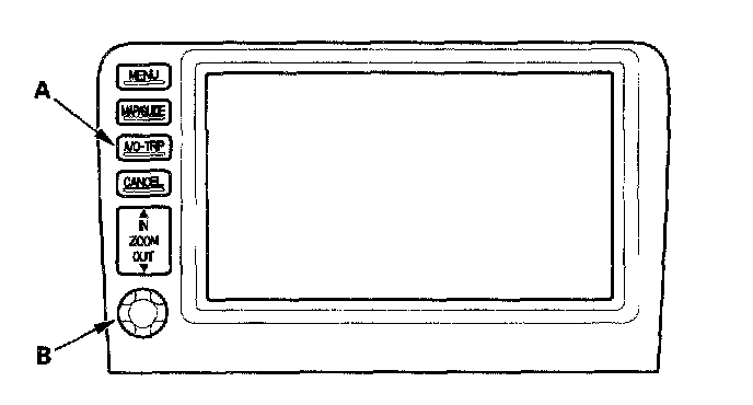 3. Press and hold the A/C-TRIP button (A), press and hold the joystick (B) up, then turn ignition switch to ACC (I)