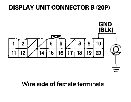 3. Check for continuity between display unit connector B (20P) terminal No. 10 and body ground.