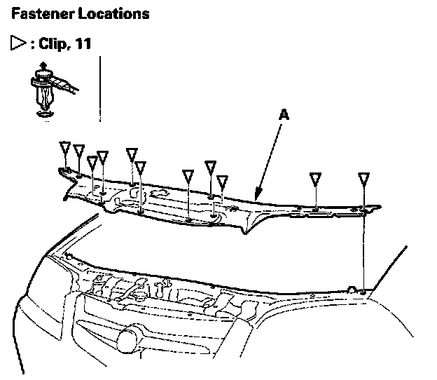 1. Detach the clips, then remove the front bulkhead cover (A).