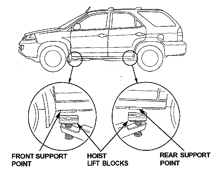 Position the hoist lift blocks, under the vehicle's front support points and rear support points.