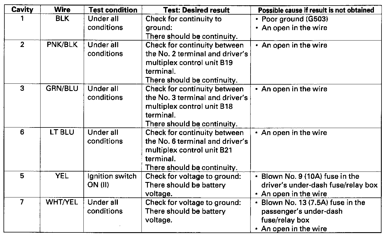 Keyless Receiver Unit Input Test1. Remove the glove box and glove box cover (see page 20-69).
