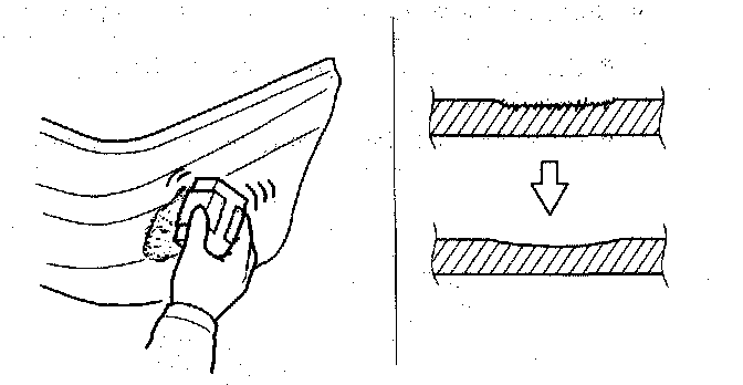 Use a knife, flexible block, and #180-#240 sandpapers.