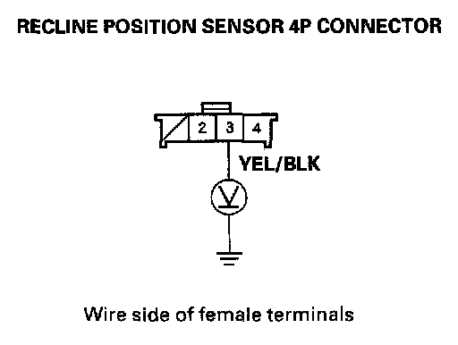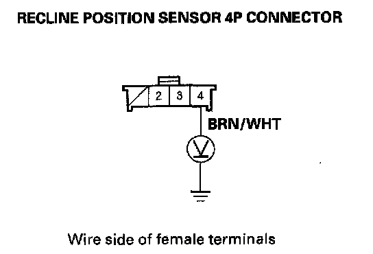 7. Check for voltage between the No. 4 terminal of the recline position sensor and body ground.