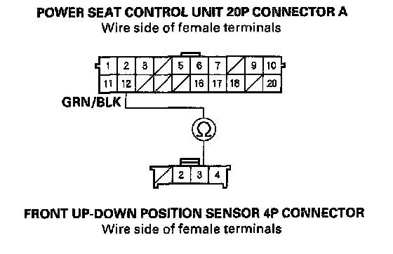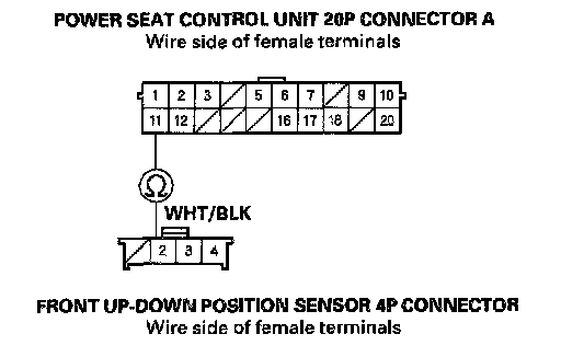 5. Check for continuity between the No. 3 terminal of the front up-down position sensor and A12 terminal of the power seat control unit.