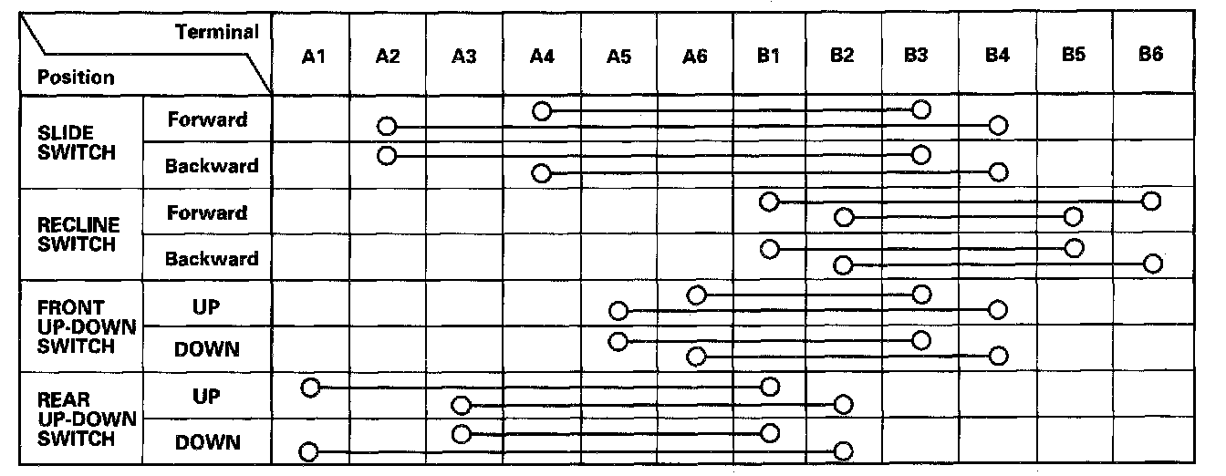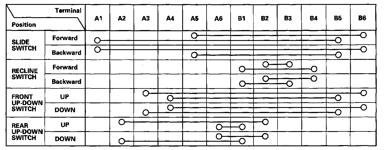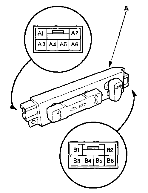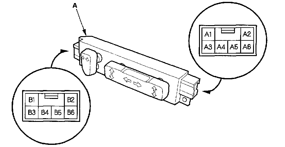 2. Disconnect the 6P connectors from the power seat adjustment switch (A).