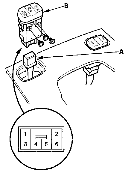2. Disconnect the 6P connector (A) from the seat heater switch (B), and remove the switch.