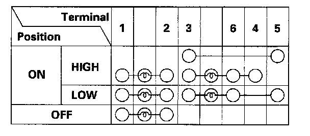 3. Check for continuity between the terminal in each switch position according the table.
