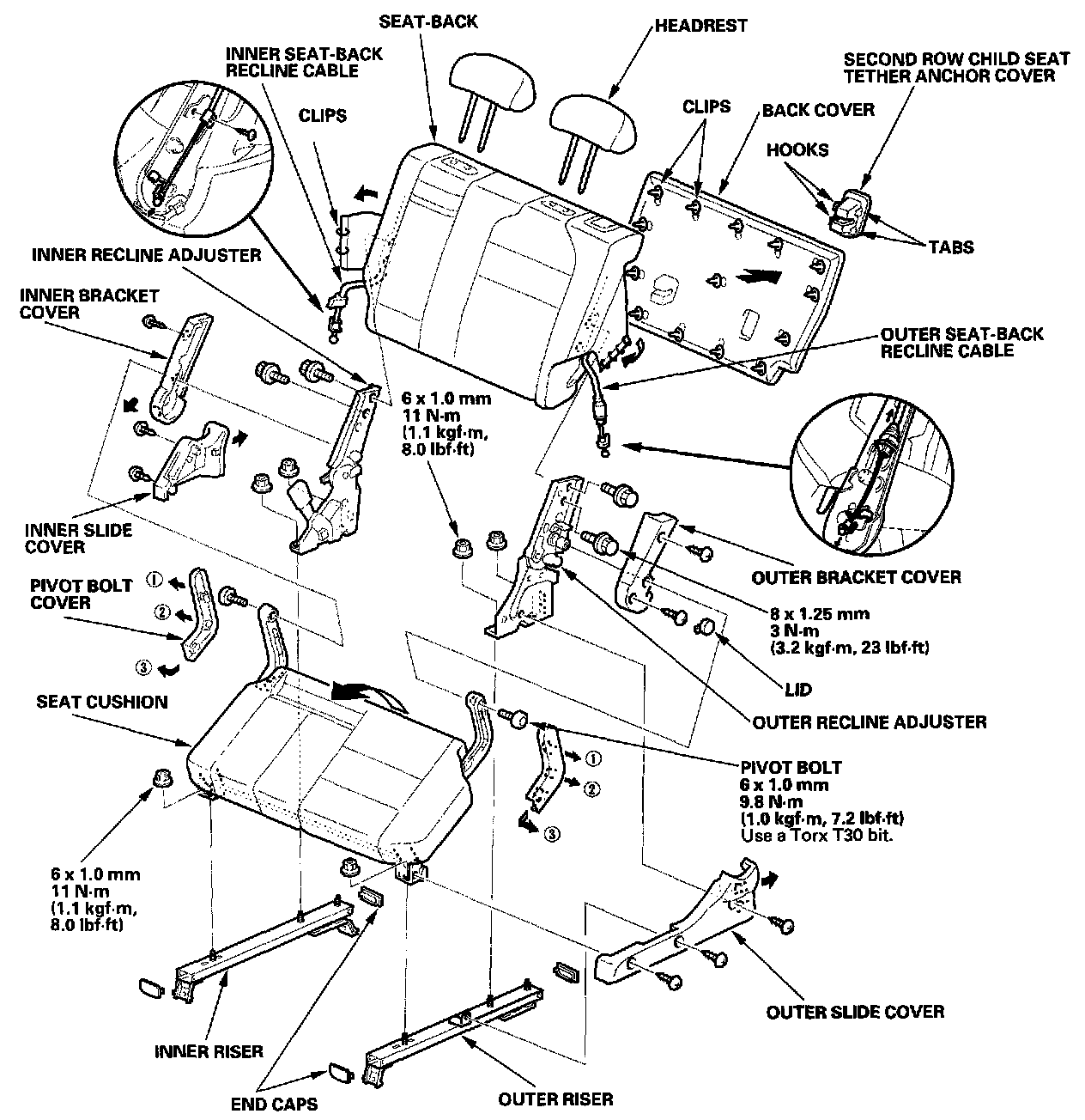 Left Second Row Seat Disassembly/Reassembly'01 Model