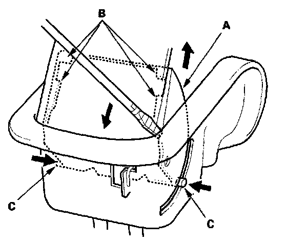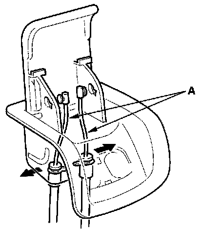 4. Disconnect the recline cables (A). There is no inner recline cable on the right recline lever.