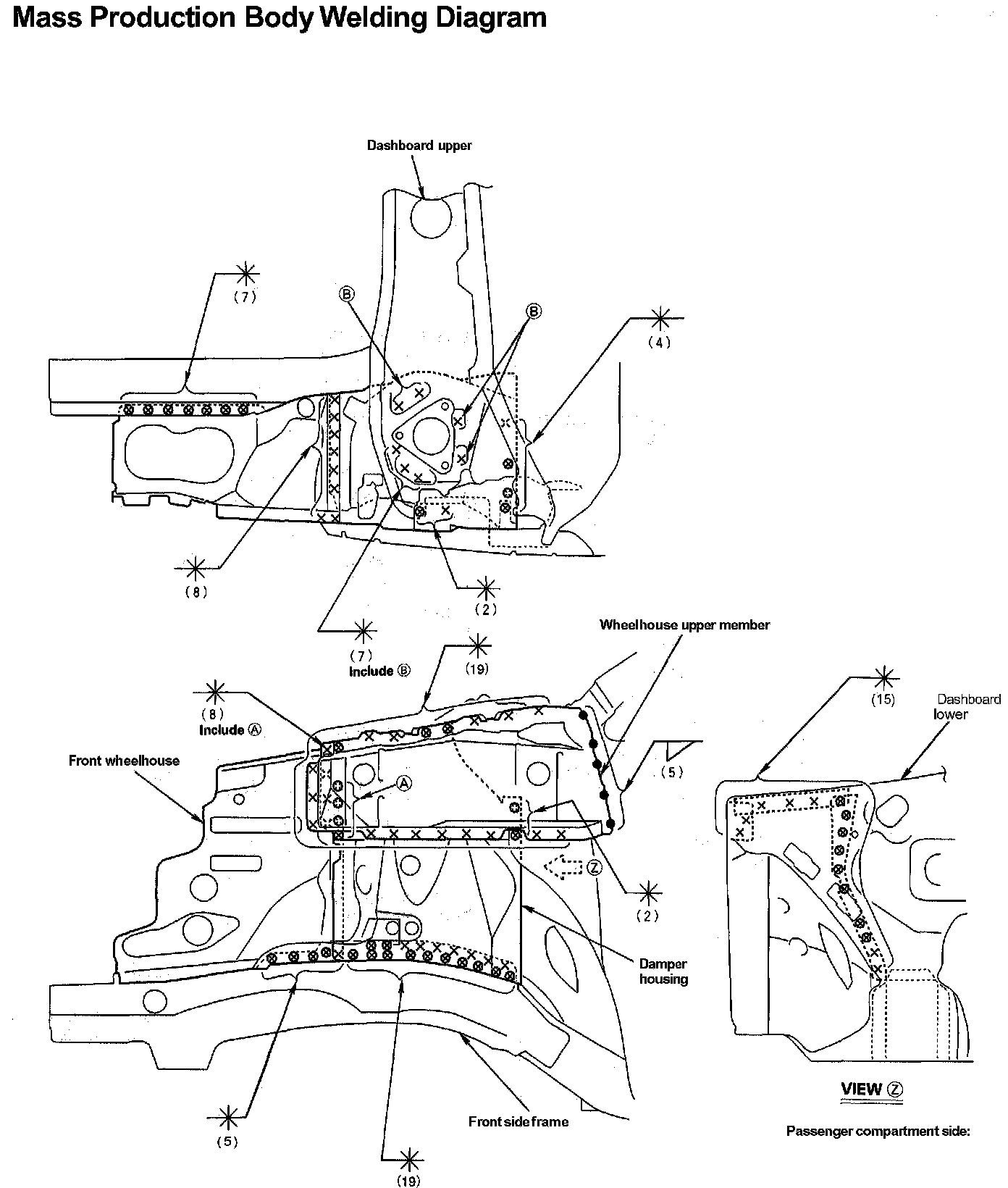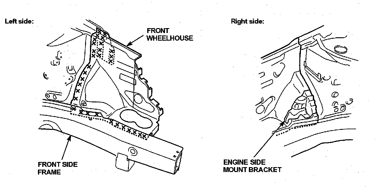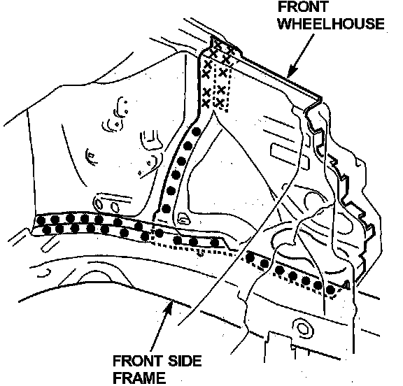 - Weld the front wheelhouse, damper housing and front side frame.