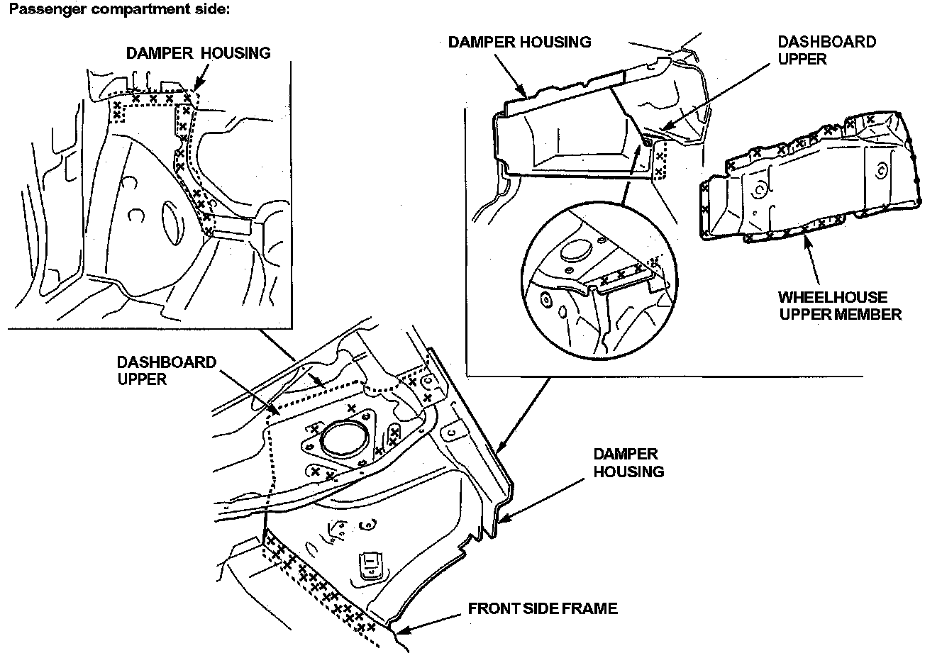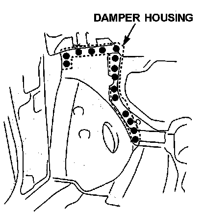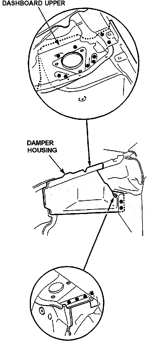- From the passenger compartment side, plug weld the holes in the dashboard lower and damper housing.
