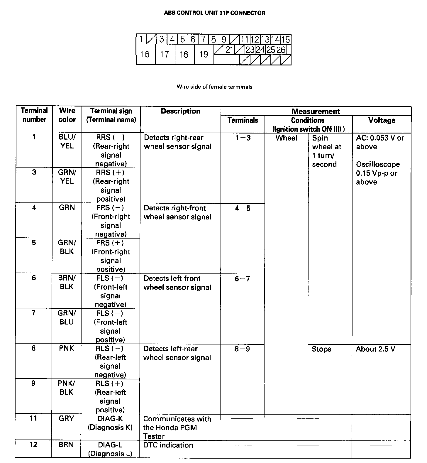 The ABS can be diagnosed with the Honda PGM Tester.
