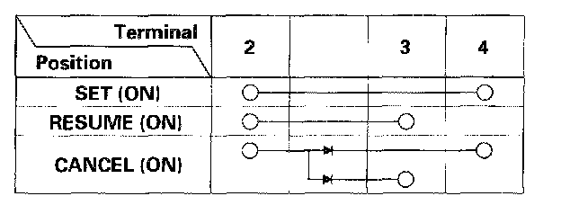 - If there is continuity and it matches the table, but switch failure was suspected after the cruise control unit input test, check and repair the wire harness.