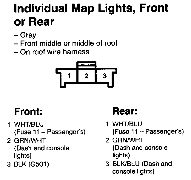 Individual Map Lights, Front or Rear: