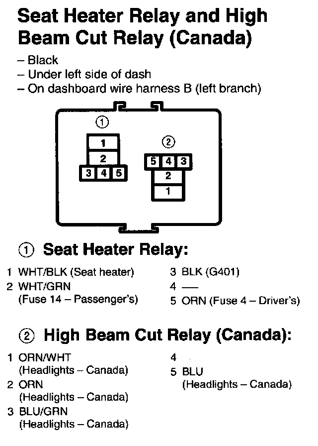 Seat Heater Relay and High Beam Cut Relay (Canada):
