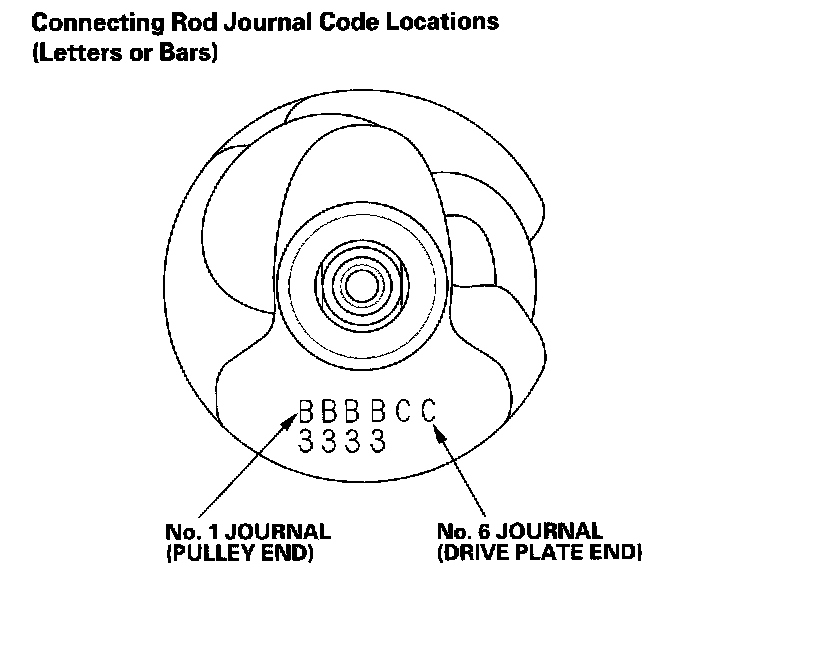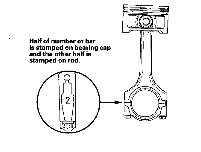 Numbers or bars have been stamped on the side of each connecting rod as a code for the size of the big end. Use them, and the letters or bars stamped on the crank (codes for rod journal size), to choose the correct bearings. If the codes are indecipherable because of an accumulation of dirt and dust, do not scrub them with a wire brush or scraper. Clean them only with solvent or detergent.