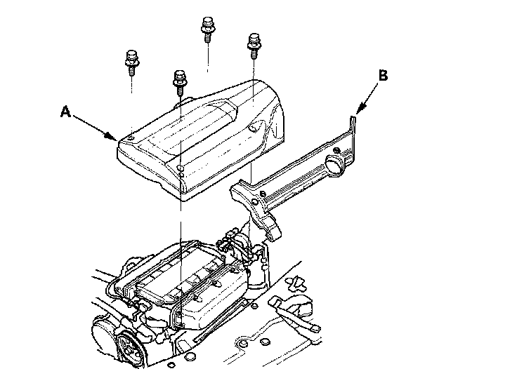 1. Remove the intake manifold cover (A) and ignition coil cover (B).