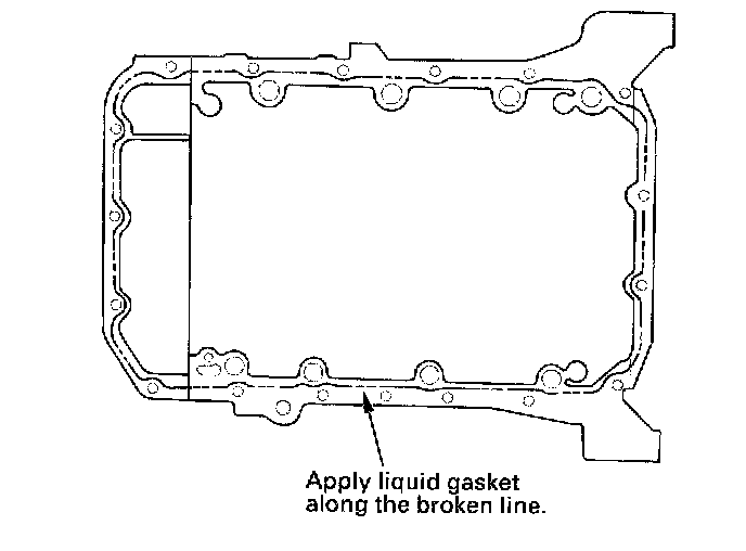 23. Apply liquid gasket, part No. 08718-0001 or 08718-0003, evenly to the oil pan mating surface of the block and to the inner threads of the bolt holes.