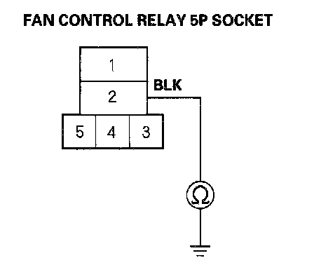 6. Check for continuity between the No. 2 terminal of the fan control relay 5P socket and body ground.