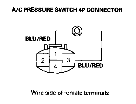 11. Check for continuity between the No. 1 and No. 3 terminals of the A/C pressure switch 4P connector.