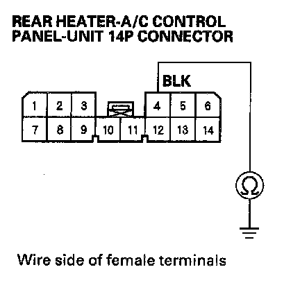 6. Check for continuity between the No. 4 terminal of the rear heater-A/C control panel-unit 14P connector and body ground.