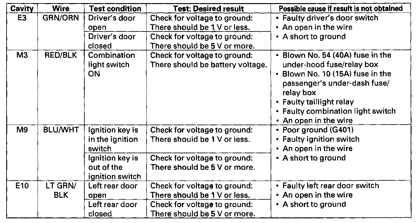 Control Unit Input Test1. Before testing the entry light control functions, troubleshoot the multiplex control system.