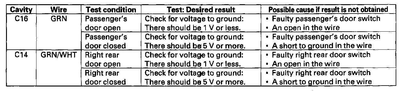 12. Reconnect the connector to the door multiplex control unit, and make the input test at the connector.