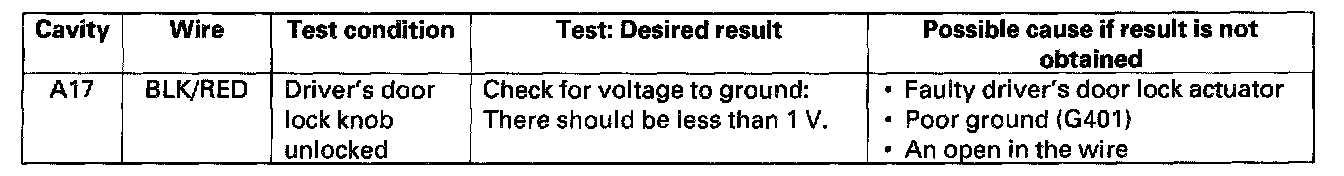 5. Reconnect the driver's multiplex control unit to the driver's under-dash fuse/relay box, and perform the following input tests at the appropriate connectors on the back of the driver's under-dash fuse/relay box.