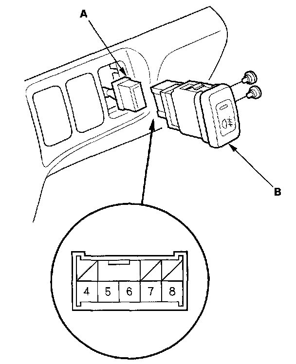 2. Disconnect the 8P connector (A) from the fog light switch (B).