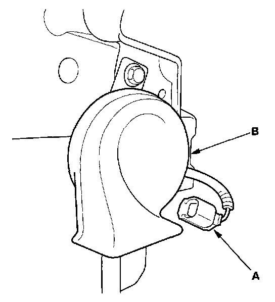 2. Disconnect the 1P connector (A) from the horn (B).