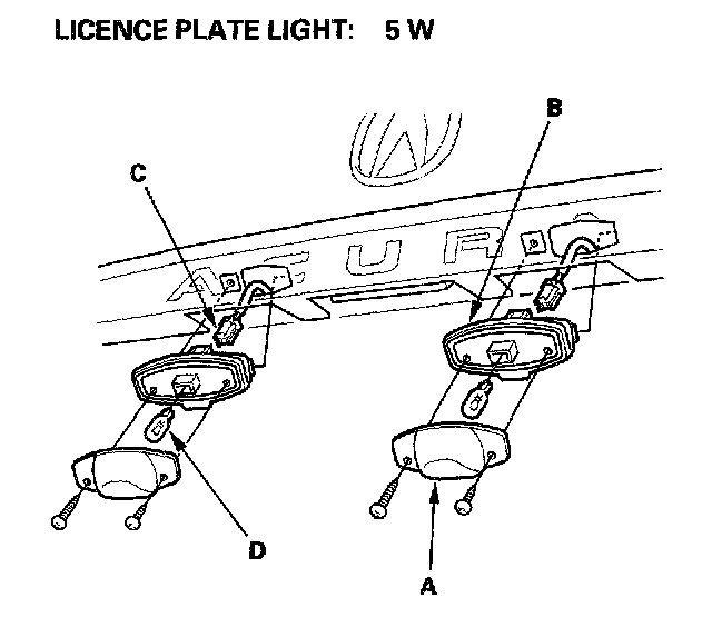 License Plate Light Replacement1. Remove the two screws, then remove the lens (A) from the license plate light (B).