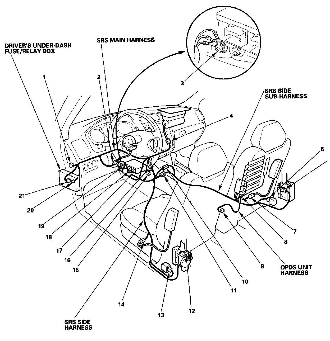 SRS Main/Side Harness, Side Sub-harness, OPDS Unit Harness - View: