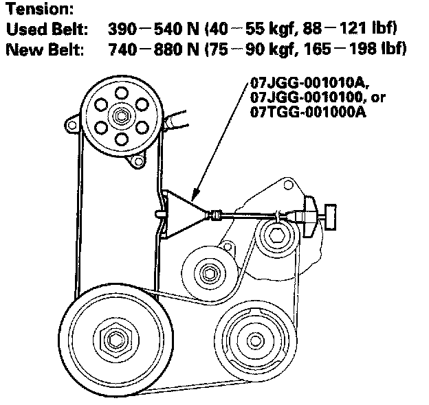 - Belt tension gauge 07JGG-001010A, 07JGG-0010100, or 07TGG-001000A