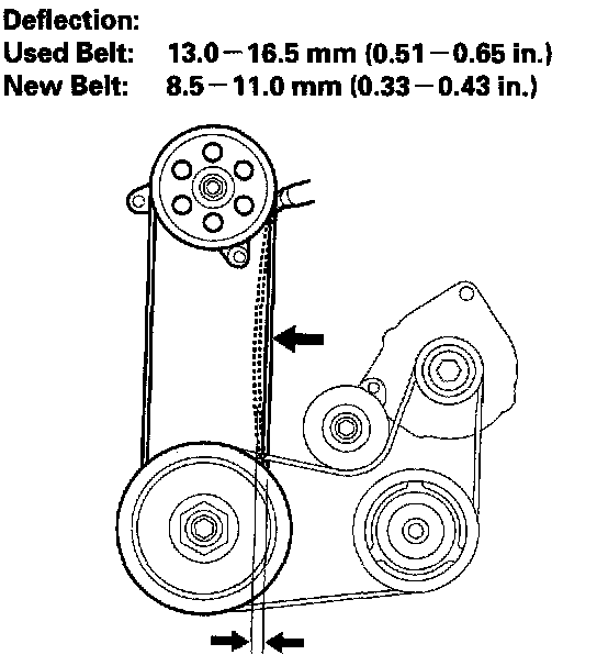 2. If you installed a new belt, run the engine for 5 minutes, then readjust the belt to the used belt specifications.