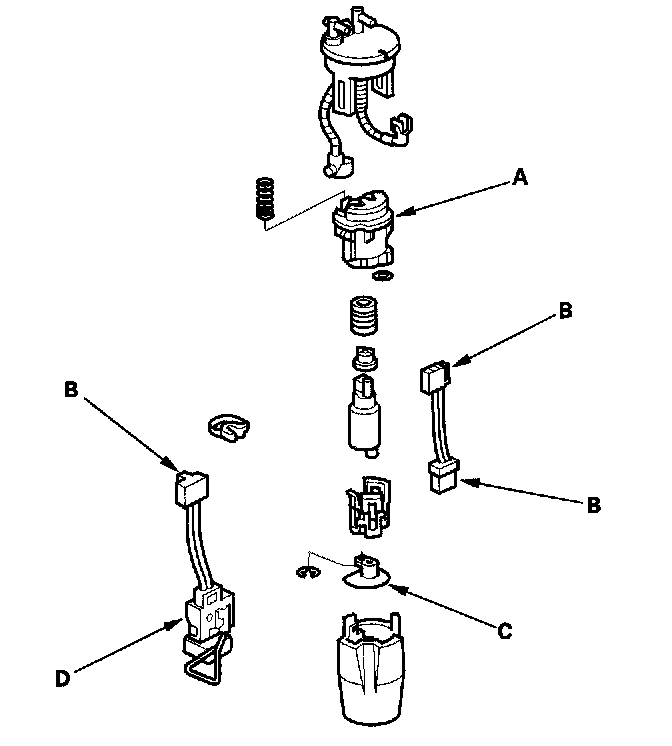 - When installing the fuel gauge sending unit (D), make sure the connection is secure and the connector is firmly locked into place. Be careful not to bend or twist it excessively.