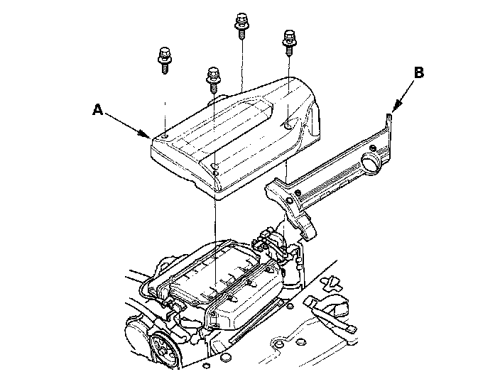 Timing Belt Inspection1. Remove the intake manifold cover (A) and ignition coil cover (B).