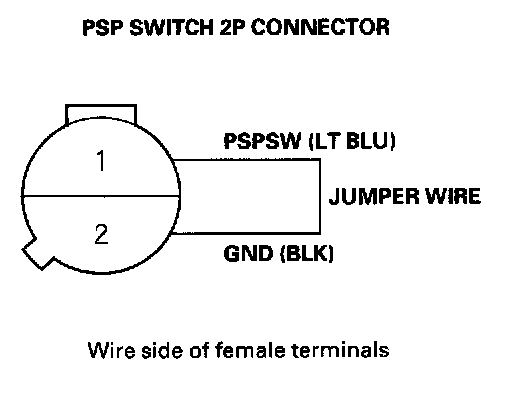 9. At the harness side, connect PSP switch 2P connector terminals No. 1 and No. 2 with a jumper wire.