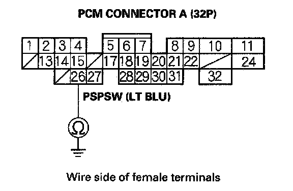 - An open in the wire between the PCM (A26) and the PSP switch.