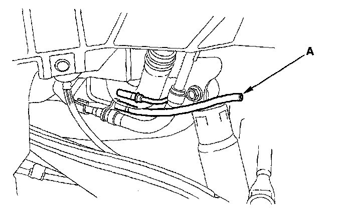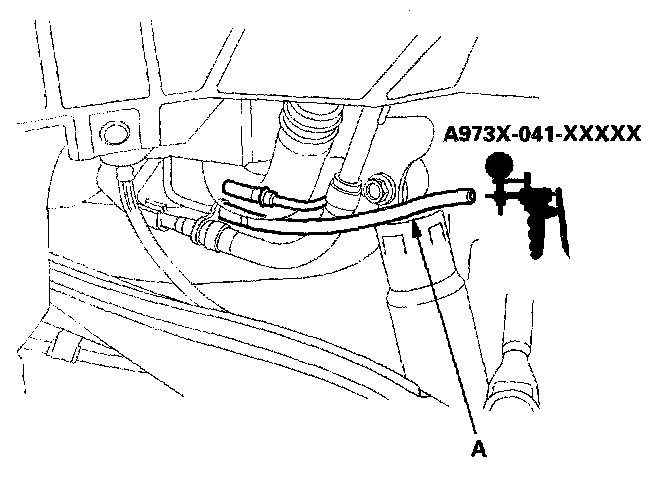 3. Disconnect the fuel tank vapor recirculation tube (A), and connect a vacuum pump to the vapor recirculation tube.