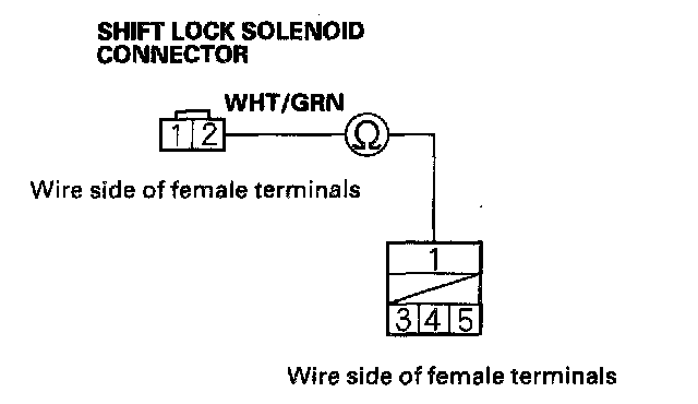 6. Shift the shift lever out of A position to check that the shift lock solenoid operates.