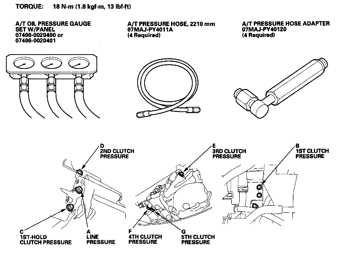 - A/T pressure hose adapter 07MAJ-PY40120