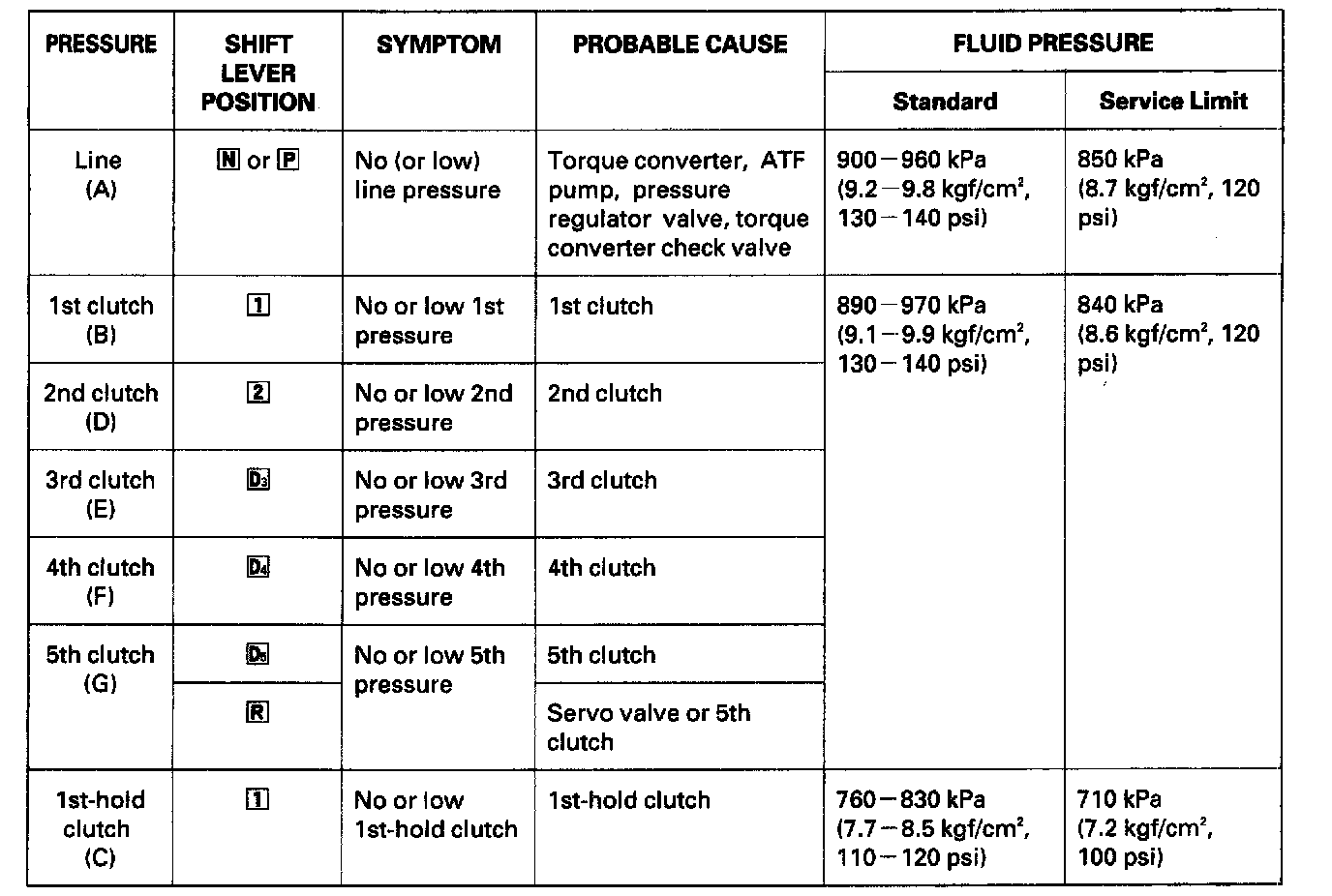1. Before testing, be sure the transmission fluid is filled to the proper level.