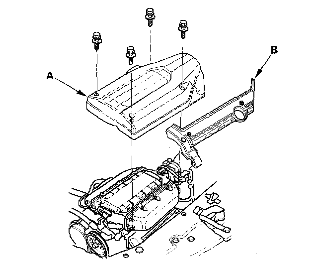 1. Remove the intake manifold cover (A) and ignition coil cover (B).