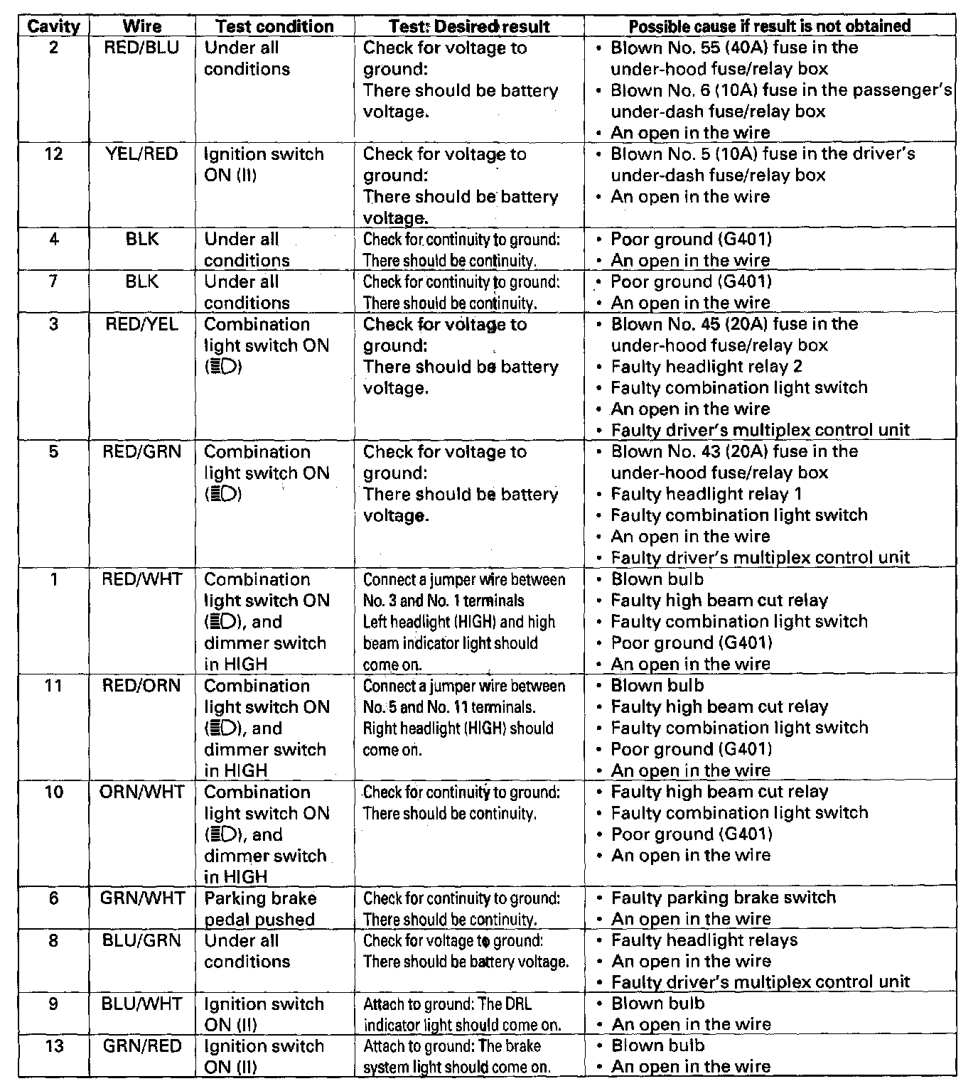 Daytime Running Lamp Control Unit: Testing and Inspection