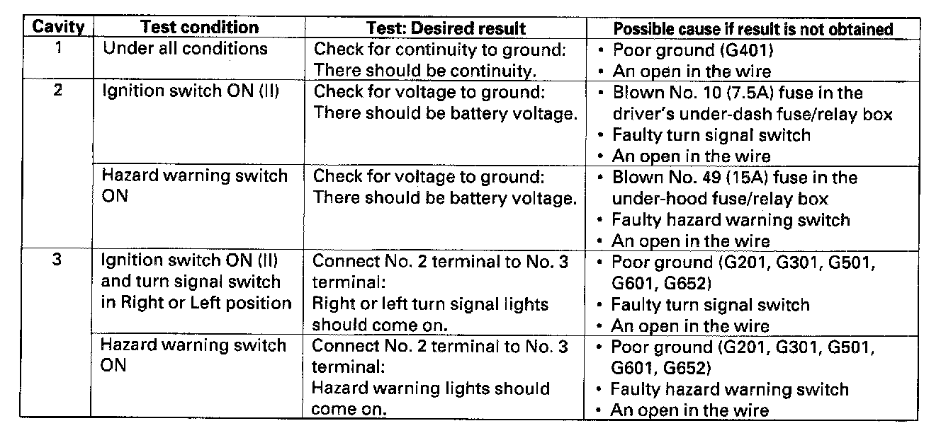 - If all the input tests prove OK, the turn signal/hazard relay must be faulty; replace it.