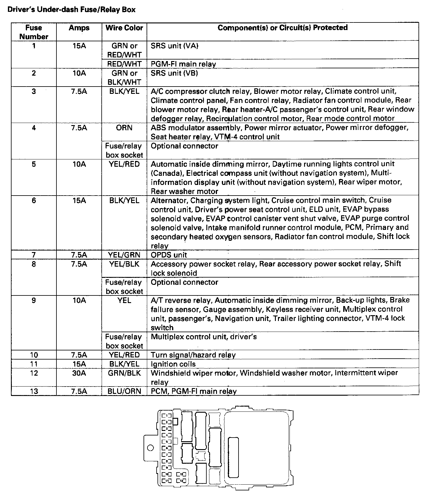 Driver's Under-dash Fuse/Relay Box: