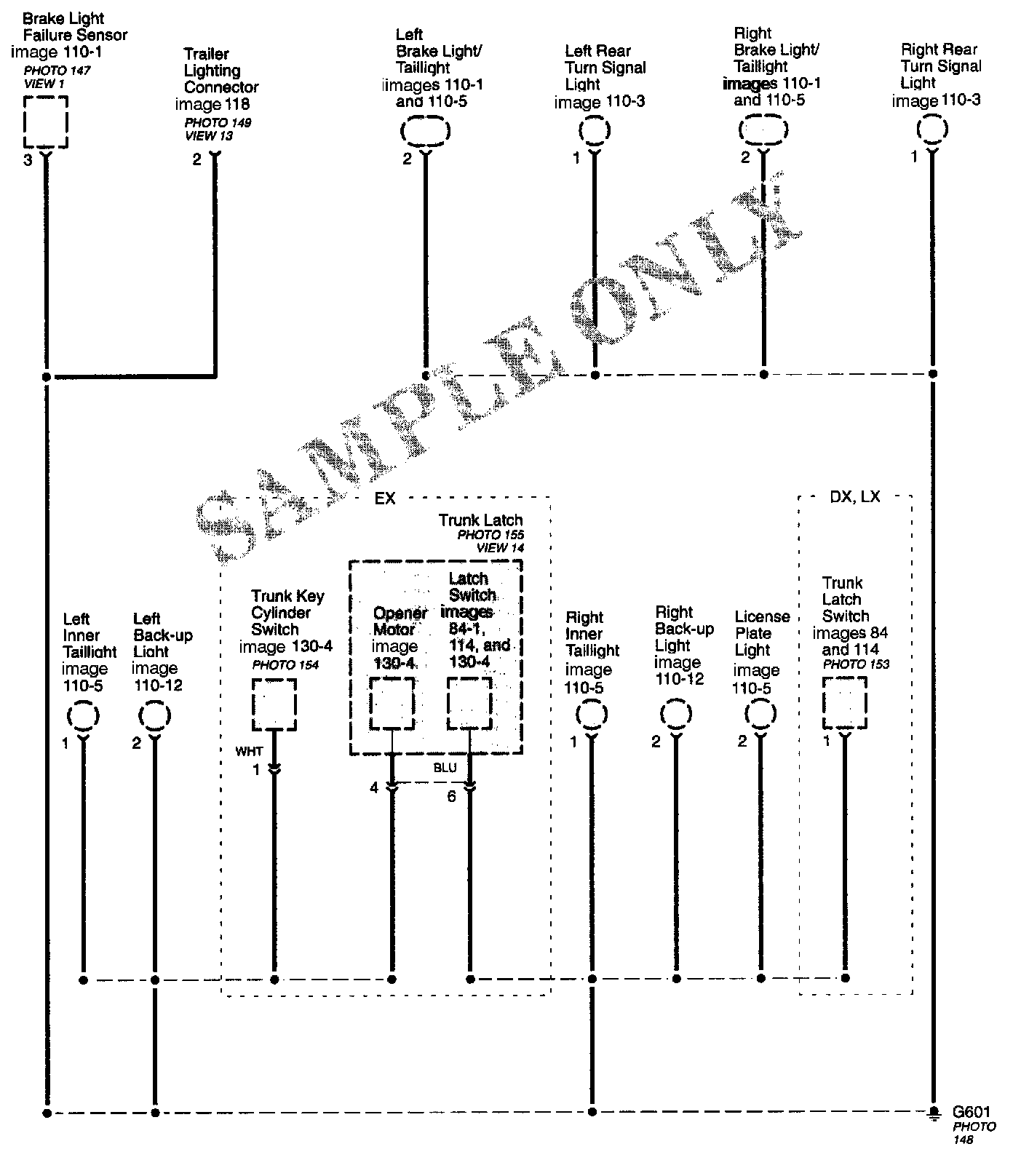 This sample Ground Distribution schematic shows all of the components that share the same ground point.