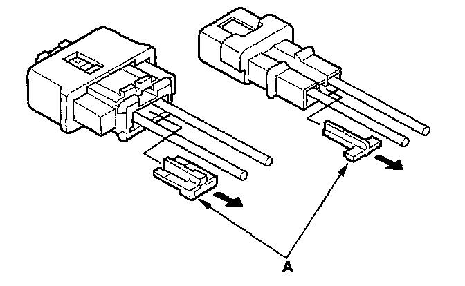 When checking voltage or resistance on this type of connector the first time, you must remove the retainer to insert the tester probe from the wire side.NOTE: It is not necessary to reinstall the removed retainer; the terminals will stay locked in the connector housing.